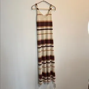 BNWT Wool Blend Knit Striped Maxi Dress in Brown and Cream