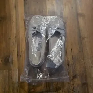 Comfort meets subtle style in these Easy Spirit slip-on flats, featuring a light beige knit upper with a twist-front bow detail and lightweight comfort sole. Designed for easy on/off wear with flexible construction, making them ideal for everyday errands, travel, or long days on your feet.