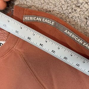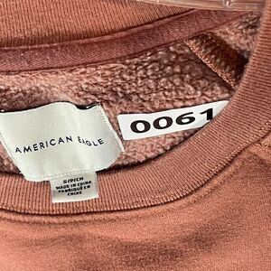 American Eagle Sweatshirt Womens Small Rust Crewneck Fleece Lined Logo Tape
