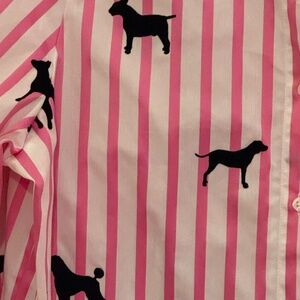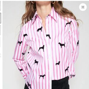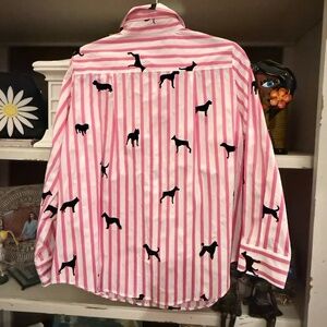 vilagallo mafalda cotton shirt pink white striped flocked dogs sz 46 10