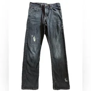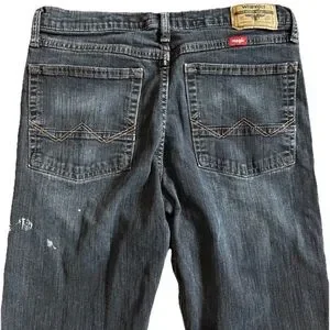 Wrangler Men’s Straight Leg Jean Dark Wash 31x32 *Paint Splattered for Work