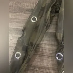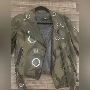 Stylish camouflage jacket featuring silver accents. Perfect for a bold look.