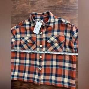 Button up flannel long sleeve shirt.