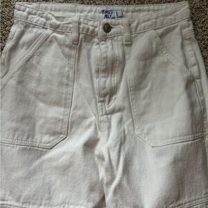 Princess Polly Calcetto Wide Leg Jeans in white, which are a workwear-inspired, high-rise, wide-leg utility jean with large front patch pockets and utility stitching.