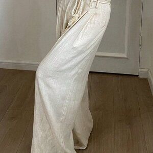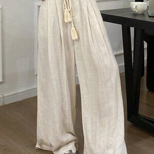 Apricot Casual Women's Pleated Waistband Drawstring Tassel Decor Pants