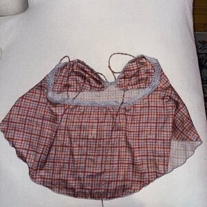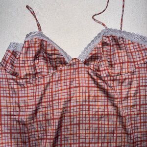 Stylish checkered top with delicate lace accents. Perfect for layering or standalone wear.
