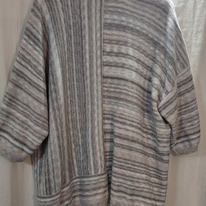 Pure J Jill Cardigan Sweater Size XL 3/4 Dolman Sleeve Gray Stripe Button Up