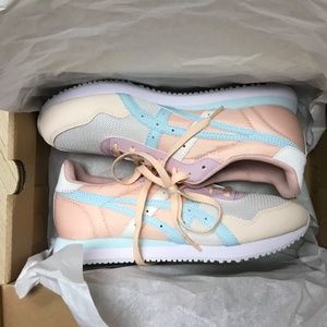 Step out in style with these Asics women's sneakers. Featuring a chic pink and blue design, these shoes offer both comfort and fashion for your everyday adventures. Great condition, may just want to clean.