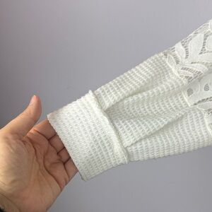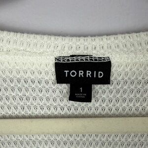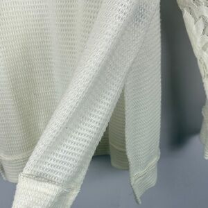 Torrid Ivory Waffle V-Neck Lace Insert Long Sleeve Size 1 Textured Knit Top