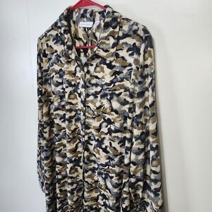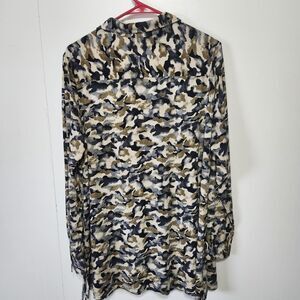 Susan Graver 1X Tunic Top Liquid Knit Camouflage Print Button Front Shirt
