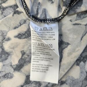This Susan Graver long-sleeved tunic top features a button-front design, side split, with an abstract camouflage-style print in shades of black, beige, brown, and gray. Made from a soft, stretchy, wrinkle-resistant Liquid Knit polyester-spandex blend, this versatile top can be worn as a shirt or a light outer layer. Part of the Susan Graver Weekend collection, previously sold on QVC. Used size 1X.