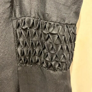 100% silk. Beaded and smocked side panels. Absolutely perfect condition. The most Y2K dress I have in my personal collection!