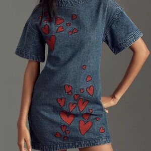 Dhruv Kapoor Short-Sleeve Embroidered Heart Denim Mini Dress