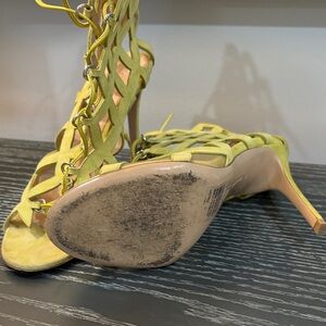 Step out in style with these vibrant lime lace-up high heel sandals. Perfect for adding a pop of color to any outfit.