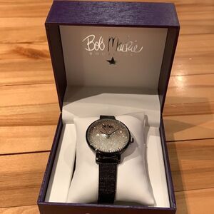 Bob Mackie Women's Black Alloy Bracelet Glitter Dial Mesh Watch 32mm. New in box
