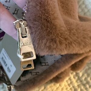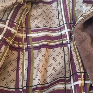 Luxurious and warm puffer jacket. Soft chocolate brown exterior. Stylish and cozy for cold weather.