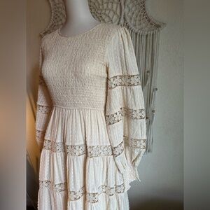By Together Cream Crochet Floral Lace Trimmed Maxi Dress- Small NWOT