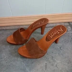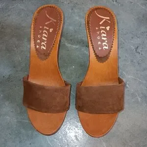 Kiara Shoes Italy Brown Suede Slides Sandals 7M NEW
