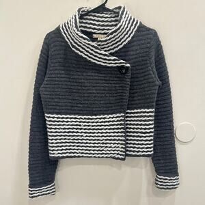 Mary Firenze Anthropologie Gray White Stripe Wool Mohair Blend Wrap Cardigan S