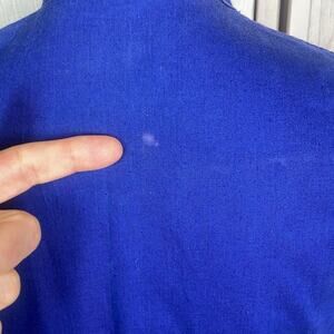 Some light fluffing to the embroidery and a discoloration to the back.