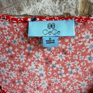 CeCe Short Sleeve Scoop Neck Floral Print Stretch Blouse Women's Size M.