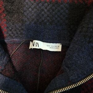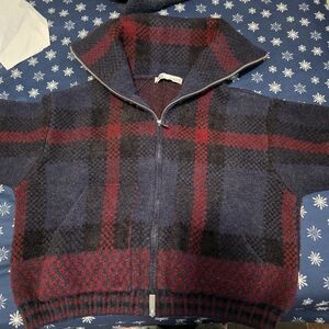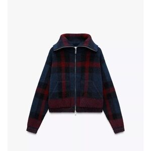 Chic checkered jacket with a navy and burgundy design. Ideal for a trendy look.