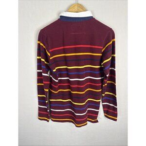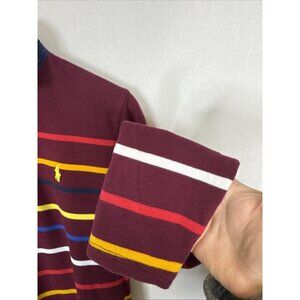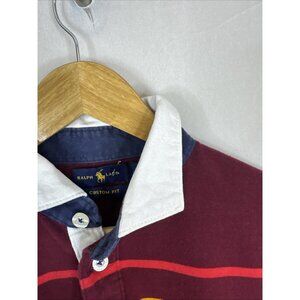 Polo Ralph Lauren Rugby Shirt Mens M Custom Fit Burgundy Striped Slim Fit