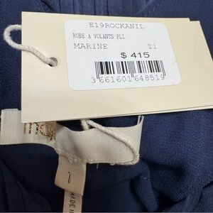 Maje sz 1 US Small Rockanil Pleated Tiered Midi Dress Marine Navy twist straps