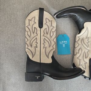 Lane Classic Square Leather Boot Women Size 7.5 Jet Black and Pale Ivory 012026