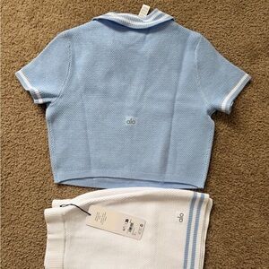 alo TENNIS CLUB SWEATER KNIT CROPPED POLO and Skirt Set Seashell Blue