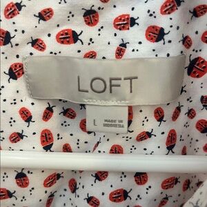 Size large loft tank/blouse with frill detailing on sleeves and running down buttons. Ladybug print perfect for spring and summer! Lightweight material