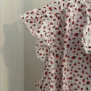 Loft ladybug ruffle cap sleeve top NWOT