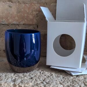 GLASSYBABY I NWT Dark Navy Cobalt Blue Hand-Blown Glass FOREVER Candleholder Art