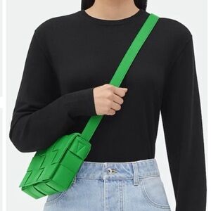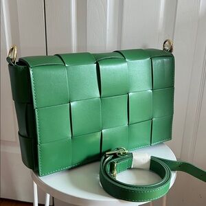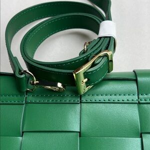 A chic, bold, and luxurious-looking bag in a stunning Kelly Green shade, perfect for adding a pop of color to any outfit! This beautiful woven design is currently a highly sought-after trend.