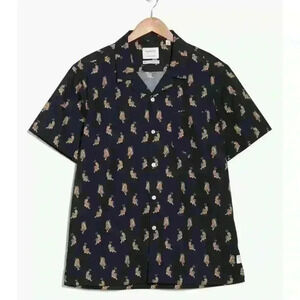 Public Art size large button down. A fierce tiger print is the calling card of this casual all-cotton camp shirt, styled with a convertible collar and chest patch pocket.