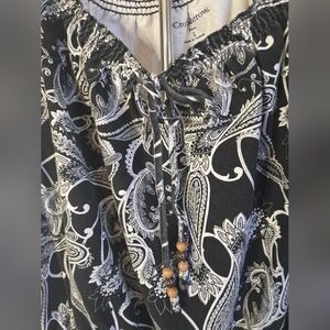 Effortless style meets everyday comfort in this Croft & Barrow black and white paisley peasant top.