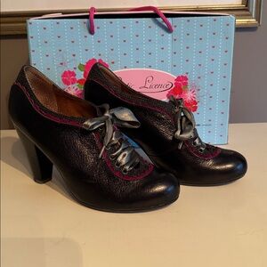 Poetic License Backlash Black and Pink Lace-Up Heels (7.5)