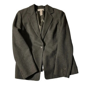 Liz Claiborne business women's size 4 dark grey one button blazer, pit to pit 19", length 24 1/2" good condition, smoke and pet free home