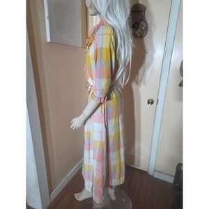 April Cornell Print Dress Small Cottagecore Beautiful Plaid Wrap Dress Lace Trim