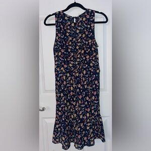This Mercantile sleeveless fit-and-flare midi dress is an easy, flattering piece with a timeless feel. Made from a lightweight fabric, it has a soft, airy flow that moves comfortably and drapes beautifully. The black base with a floral pattern keeps it classic while still adding a feminine touch.