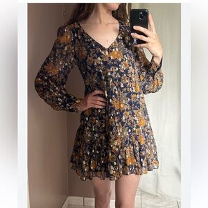 NWOT Sezane Floral Mini Silk-Blend Long-Sleeve Dress 38