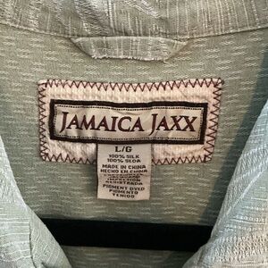 Jamaica Jax 100% Silk Mens Tropical Palm Leaf Bamboo Button Down Shirt Size LARGE (See Approx Measurements noted Below)