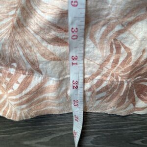 Pink palm printed linen blend (55% Linen, 45% Ecovera). Hourglass. Collared neckline. Short sleeves. Pull-on. 35" from shoulder to hemline. Imported.