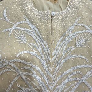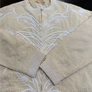 Vintage Hand Beaded Angora Lambswool Cardigan Sweater Cream Size 40/Medium