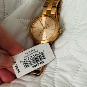 MK6409 is a stylish and elegant wristwatch designed for women. Featuring a bezel and band color of rose gold, this watch has a classic and timeless appeal. With a quartz movement, water-resistant capabilities, date indicator, and 12-hour dial, it is versatile for both dressy/ formal occasions and everyday wear. Made of rose gold case material and displaying an analog display, this Michael Kors watch is a must-have accessory for any fashion-forward individual.
