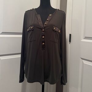 White House Black Market Olive Blouse with Gold Buttons