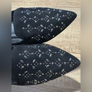 Cato Flats Elegant Black Rhinestone Loafers size 8 faux suede slip on shoes