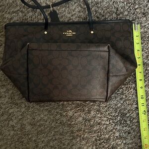 Coach Signature Brown Monogram Tote Bag Large Shoulder Bag Canvas Leather Trim