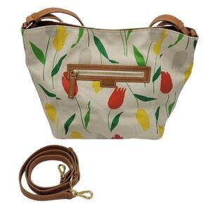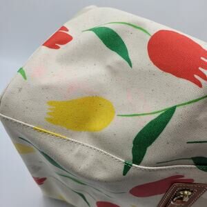 Frances Valentine Tulip Canvas Tote Bag Leather Trim Handle & Shoulder Strap