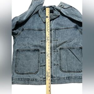 Civil Regime men’s Pleated Denim Jean Jacket Light Denim Wash button up large